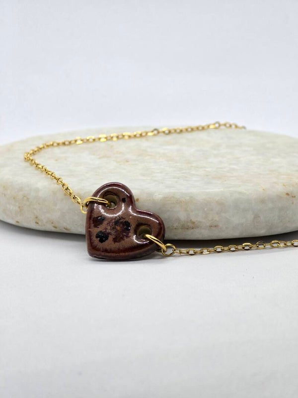 Stainless steel ketting met een handgemaakt keramieken hartje in het midden.